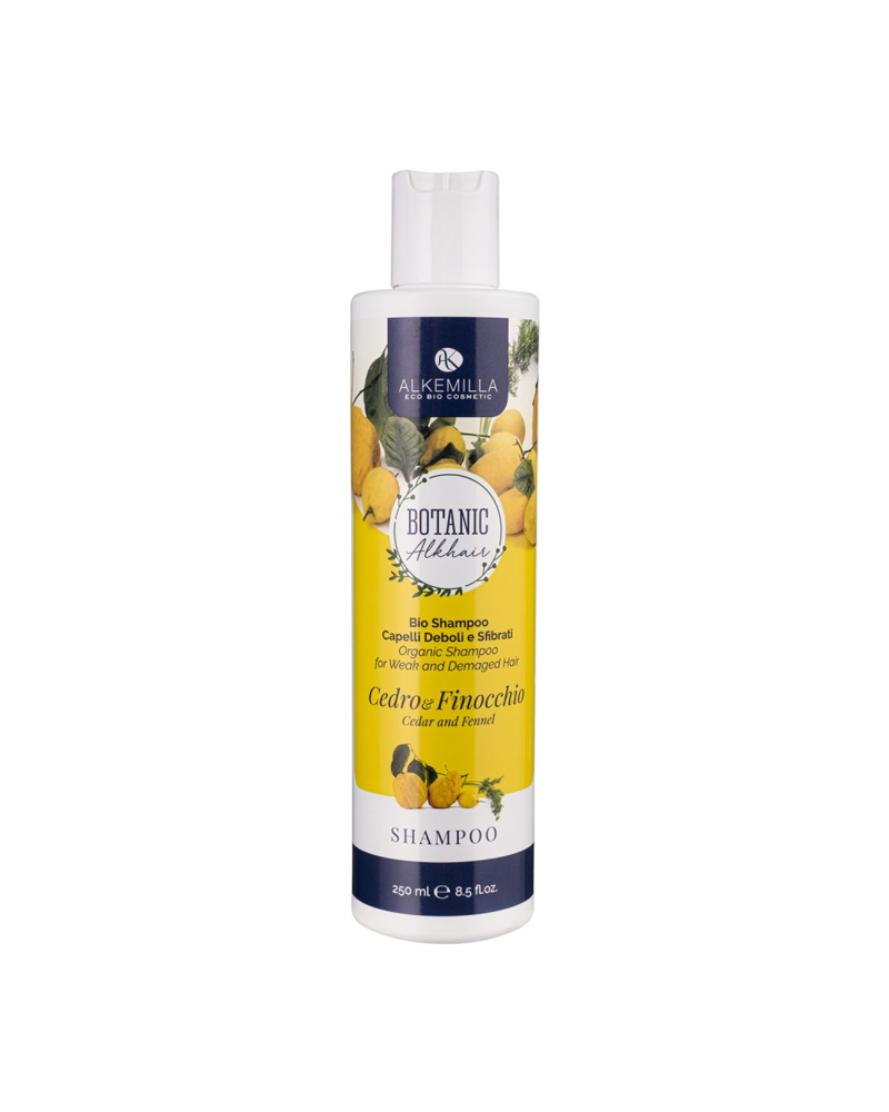 Shampoo bio volumizzante con cedro e finocchio. Delicato sulla cute, rinforza la fibra e dona corpo e lucentezza ai capelli sottili e sfibrati.