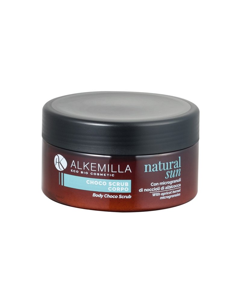Scrub corpo naturale e goloso con burro di cacao e noccioli di albicocca, per una pelle levigata, morbida e dolcemente profumata di cioccolato.