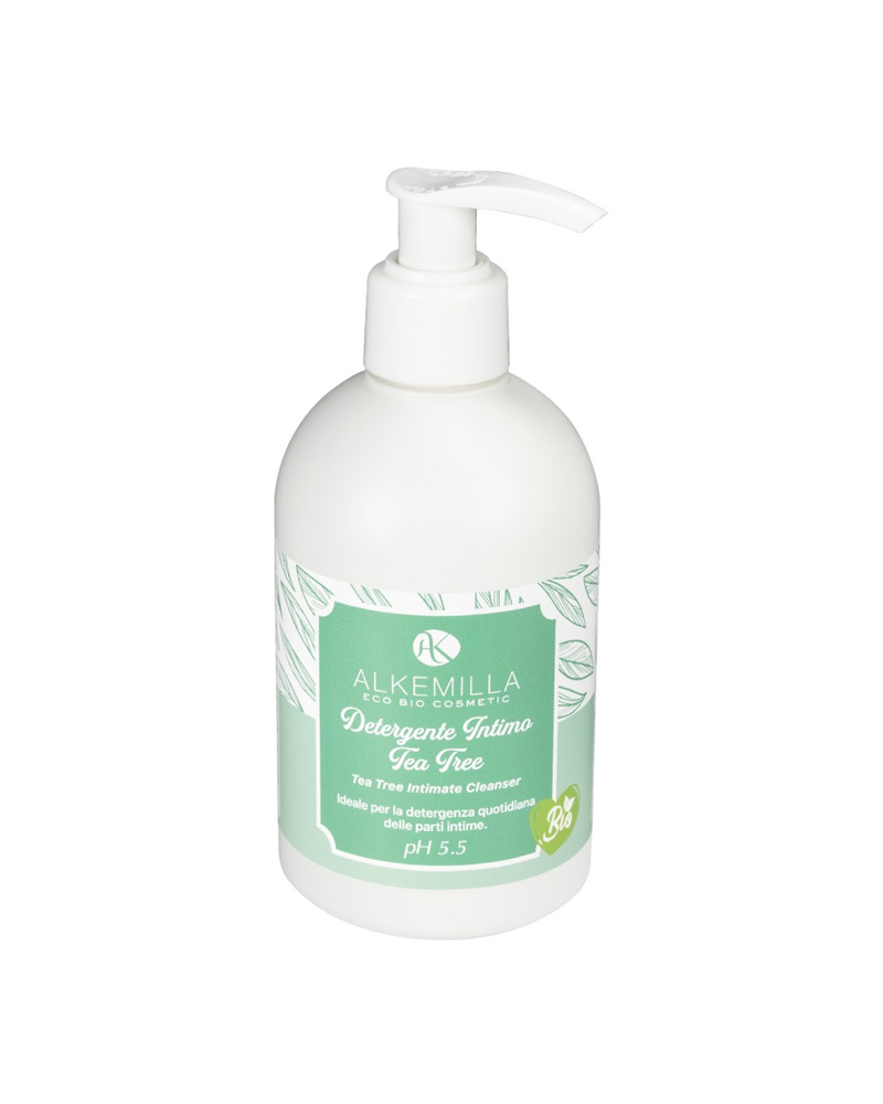 Detergente intimo eco-bio a base di olio essenziale di Tea Tree, formulato per una pulizia delicata, igienizzante e rinfrescante, rispettando il pH delle mucose intime.