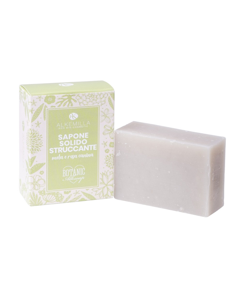 Sapone vegetale e delicato, realizzato con oli naturali e biologici, ideale per la detersione quotidiana del viso e la rimozione del make-up. Profuma dolcemente di mela e rosa canina.