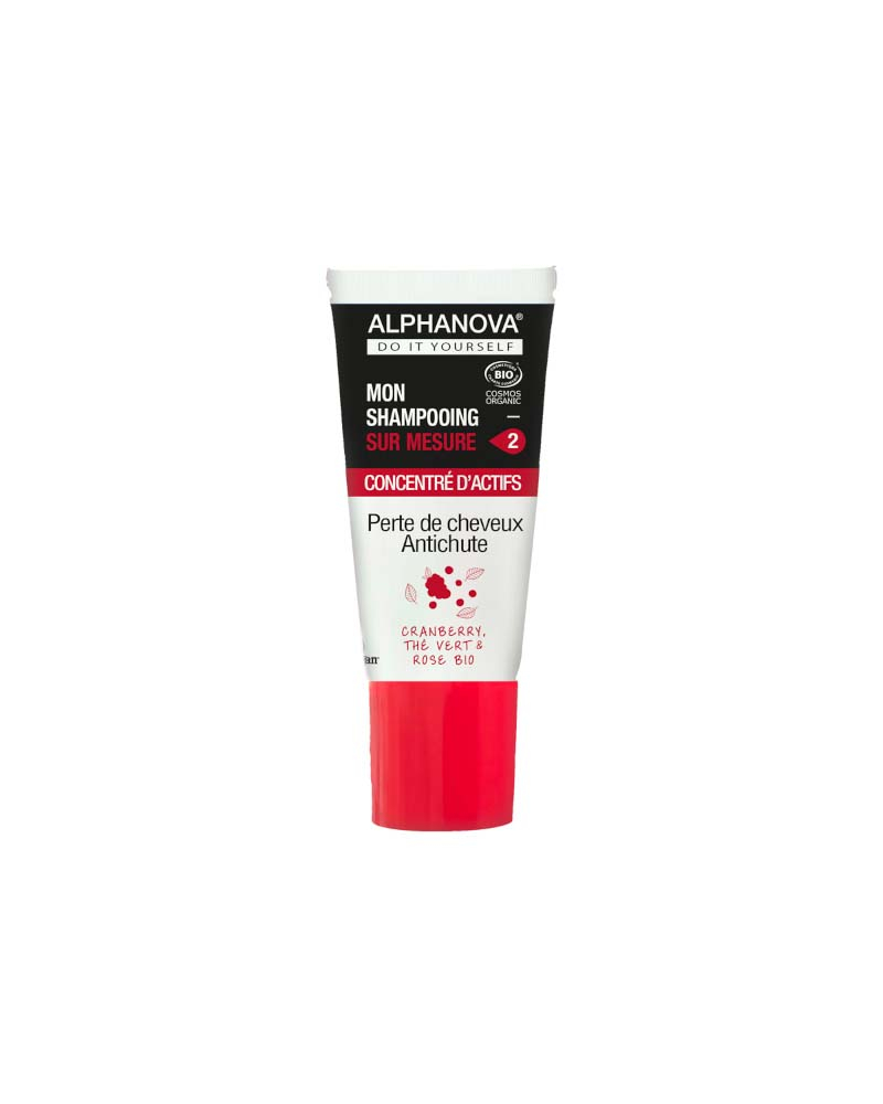 Il concentrato di principi attivi anti-caduta cosmos biologico e vegano va aggiunto al tuo shampoo ALPHANOVA DIY per personalizzarlo.