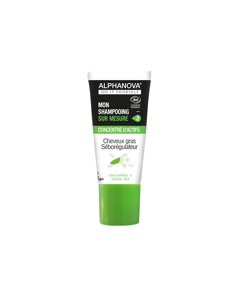 Questo concentrato d’attivi contiene un’alta percentuale di estratti di Cetriolo, Ortica e Salvia bio dall’azione seboregolatrice per i capelli grassi. Vegan & Certificato Bio. Va aggiunto allo Shampoo Base prescelto. Il tubetto è graduato e permette di aggiungere la dose completa per la massima efficacia, oppure metà dose per un’azione progressiva.