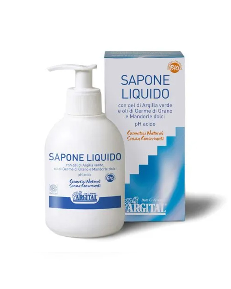 Nel Sapone liquido Argital i puri oli vegetali di Germe di Grano, ricco di Vit. E, e di Mandorle dolci nutrono la pelle. Il gel di argilla verde Argital ricco di oligoelementi naturali purifica, protegge e rende più tonica la pelle. Senza conservanti.