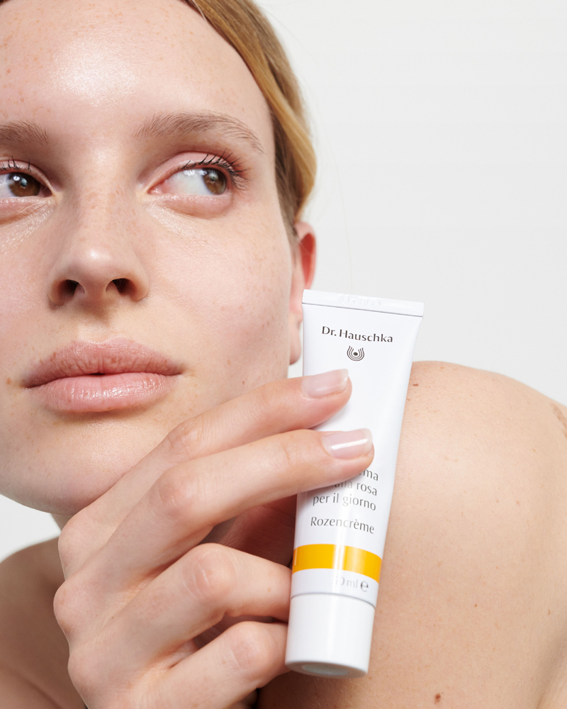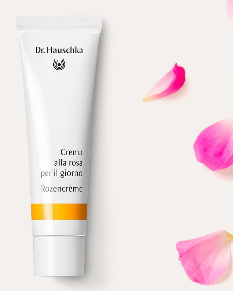 Un grande classico della cosmesi Dr. Hauschka, la Crema alla rosa per il giorno racchiude tutta la forza e la delicatezza della rosa. Dona sollievo e comfort immediato alla pelle secca, molto secca, sensibile e matura, che tende ad arrossarsi o a mostrare fragilità capillare. Gli estratti di petali di rosa e di bacche di rosa canina rinforzano la struttura cutanea, mentre burro di karité, cera di rosa e olio di avocado preservano l’idratazione e proteggono dagli agenti esterni. La sua composizione con piante officinali come rosa, altea e iperico armonizza l’equilibrio idrolipidico, regalando una pelle morbida, nutrita e luminosa.