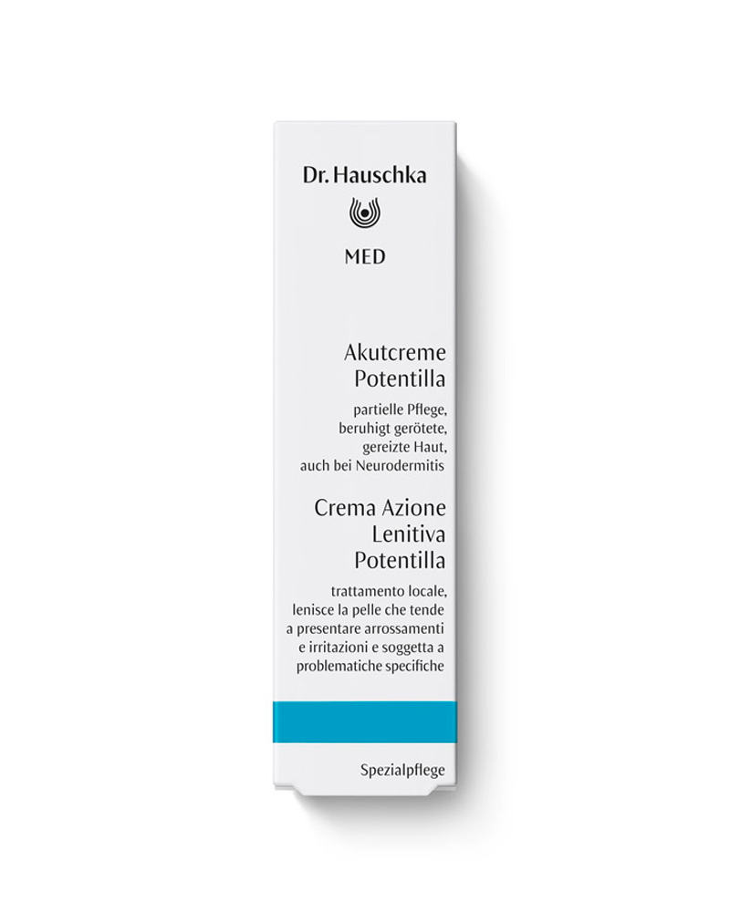 Lenisce il prurito e dà sollievo rapido alle aree arrossate: la Crema Azione Lenitiva Potentilla è pensata per intervenire ai primi segni di irritazione. Il cuore della formula è l’estratto di Potentilla (Potentilla officinalis), ricavato dalla radice ricca di sostanze lenitive, che aiuta a riportare la pelle al suo equilibrio. Texture confortevole e senza profumo, adatta anche ai bambini piccoli; ideale come supporto mirato all’interno della routine Dr. Hauschka MED per pelle molto secca a tendenza atopica.