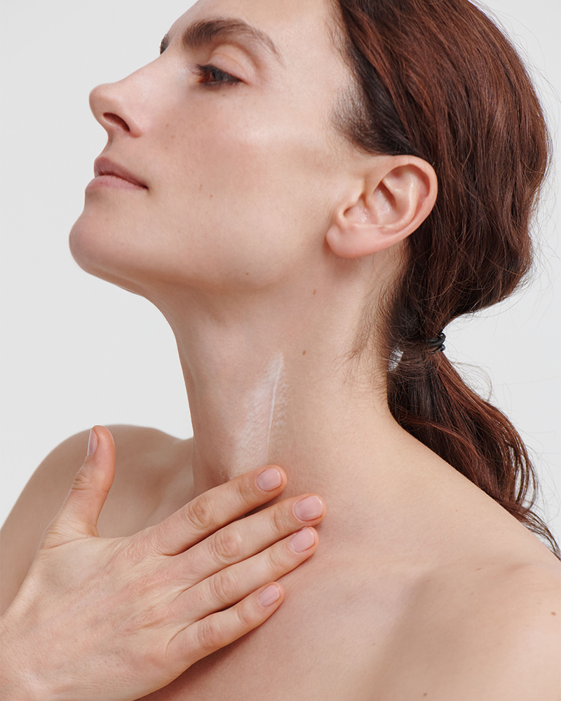 Al mattino, dopo la detersione e l’applicazione del Siero rigenerante, stendere una piccola quantità di Crema Rigenerante collo e décolleté e massaggiare fino ad assorbimento.