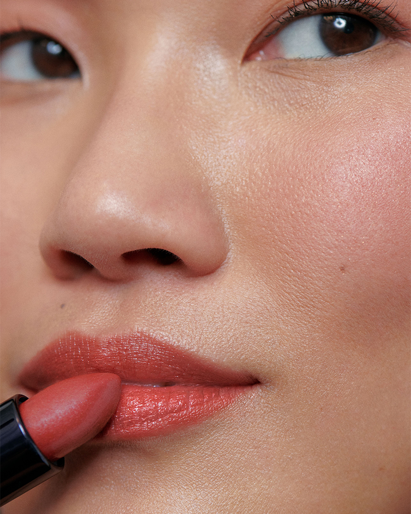 Applicare direttamente sulle labbra o con pennellino per maggiore precisione. Per un effetto soft, picchiettare delicatamente sulle labbra.