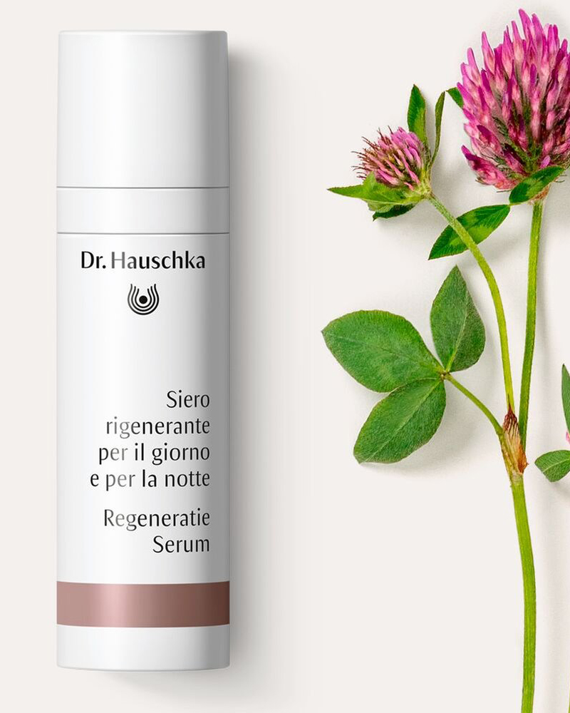 Il Siero Rigenerante per il giorno e la notte di Dr. Hauschka stimola i naturali processi di rigenerazione cutanea, sostenendo la pelle matura nella sua capacità di rinnovarsi. La composizione con semi di cotogna, bryophyllum, trifoglio rosso e miele di trifoglio rafforza le funzioni cutanee, regola l’idratazione e leviga visibilmente la grana. Ideale per rassodare, ridurre le linee sottili e donare equilibrio anche alla pelle sensibile, è un trattamento versatile: base perfetta per il giorno e trattamento privo di grassi per la notte.