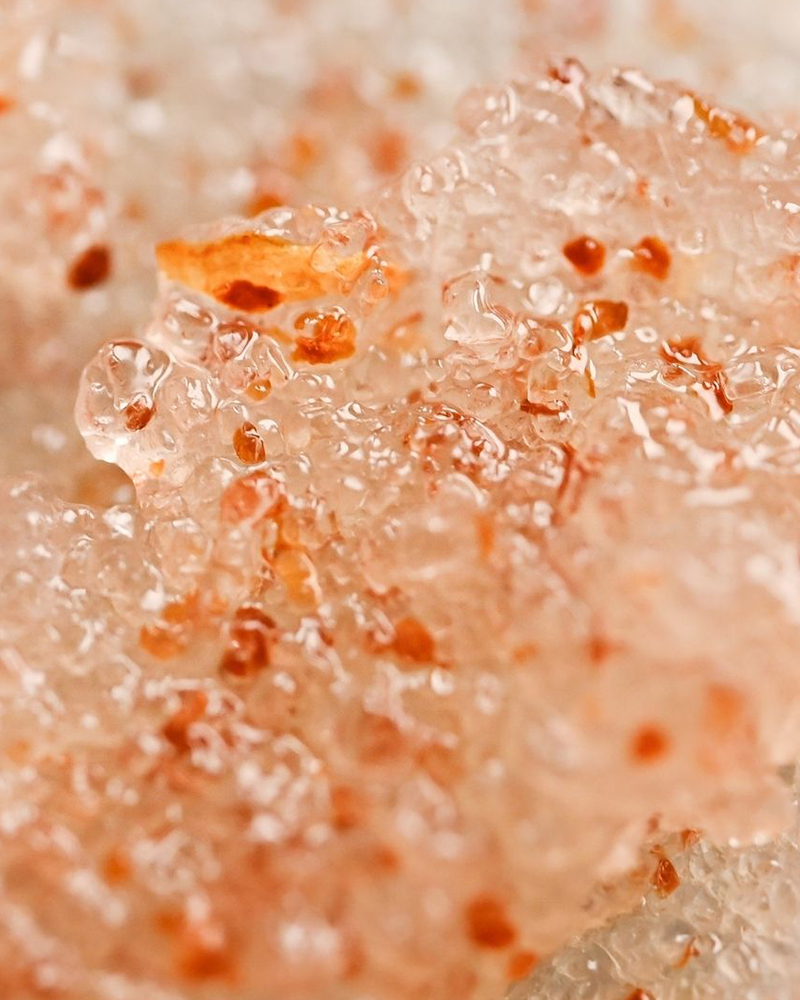 Realizzato con zucchero di Barbabietola e vinacce di Mela riciclate, esfolia delicatamente la pelle, aiutandola a ritrovare una texture morbida e una luminosità naturale.
