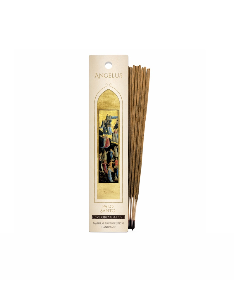 Ogni bastoncino Angelus è arrotolato a mano e racchiude un equilibrio perfetto tra natura e sacralità. All’interno della confezione, un segnalibro con immagini sacre tratte dall’arte italiana guida l’esperienza olfattiva verso un gesto di meditazione e contemplazione.