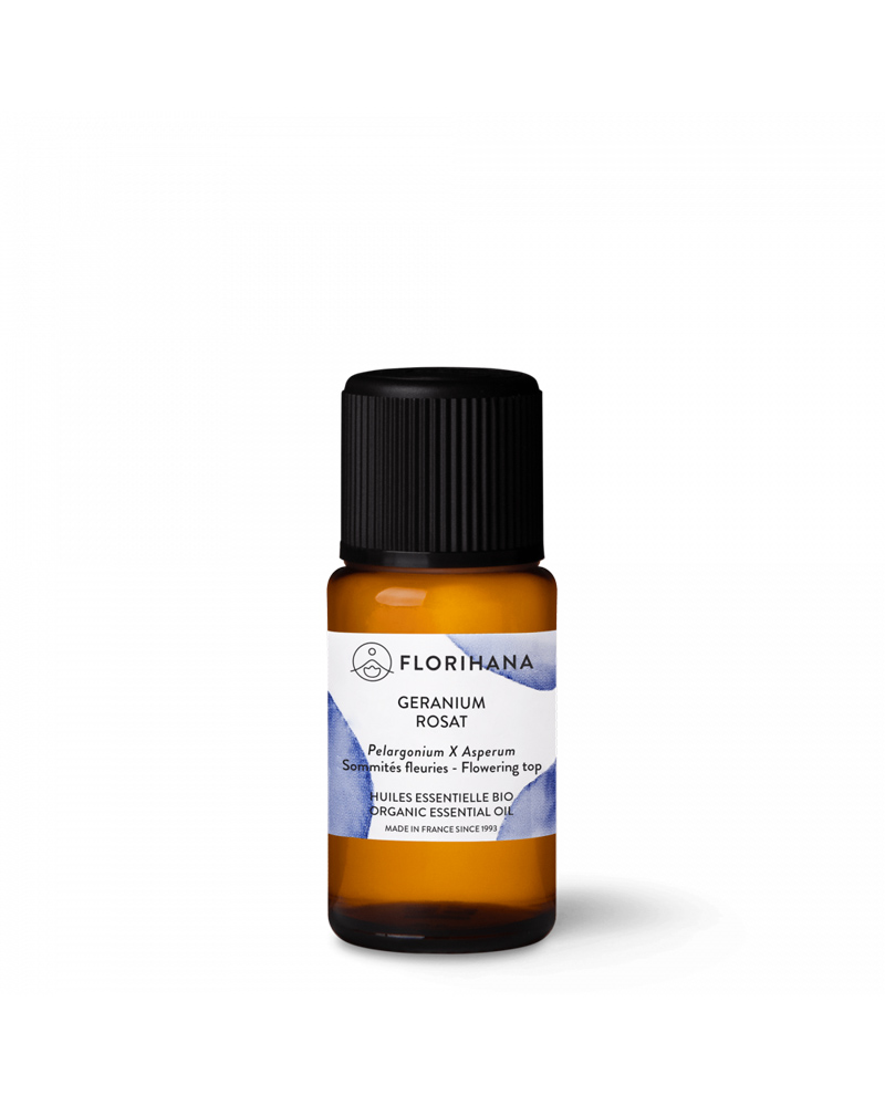 L’olio essenziale di geranio rosat si distingue per la sua nota floreale, morbida e leggermente verde, ricca in alcoli monoterpenici ed esteri (profilo Florihana con circa 50% e 17% rispettivamente), sostanze aromatiche comunemente correlate ad azioni riequilibranti e armonizzanti. Nella pratica aromaterapica viene spesso considerato come modulatore, particolarmente utile nei percorsi di ristabilimento dell’omeostasi sensoriale e negli approcci dedicati al riequilibrio del tono cutaneo e del sistema emozionale.