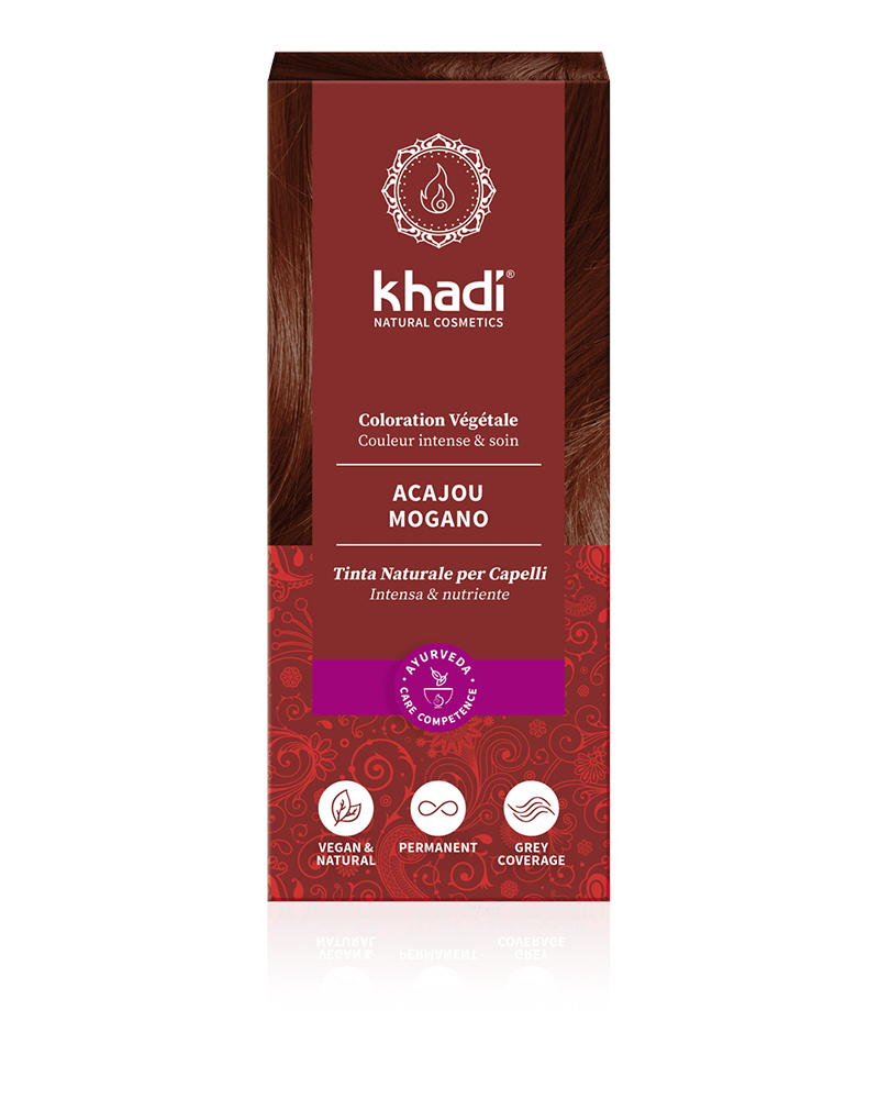 Tutte le Tinte Naturali per Capelli khadi sono al 100% naturali e vegane, non contengono coloranti sintetici, fragranze né conservanti.