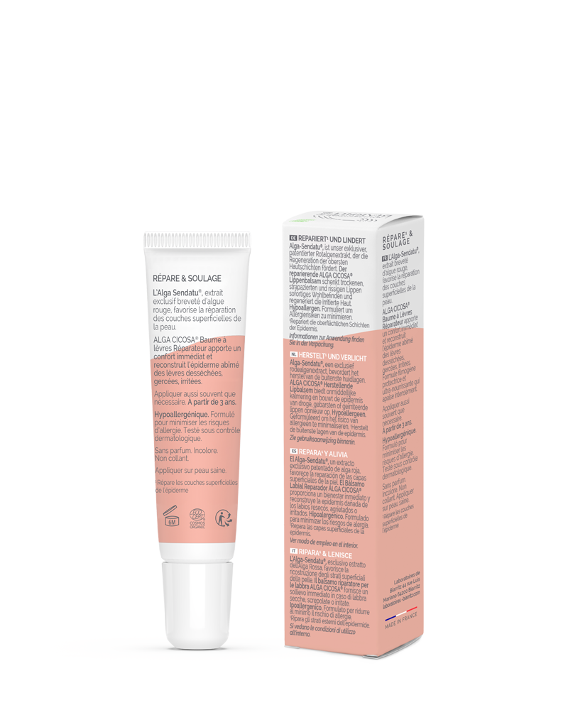 Il Balsamo Labbra Riparatore* ALGA CICOSA® si prende cura, protegge e rigenera le labbra screpolate, irritate e stressate di tutta la Famiglia (bambini e adulti).