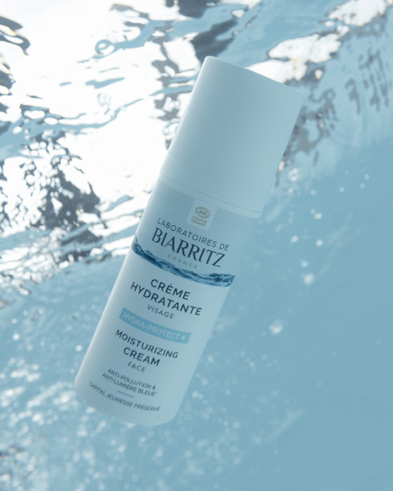 Cosmetico multi-azione, la Crema Idratante Viso HYDRA-PROTECT + certificata BIO risponde ai bisogni fondamentali della pelle: apporta idratazione intensa 24h, una protezione globale contro le aggressioni quotidiane (1) (luce blu, inquinamento, stress, fatica, ...) e previene l'invecchiamento cutaneo.