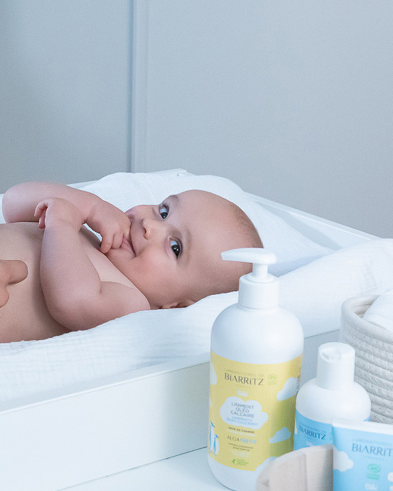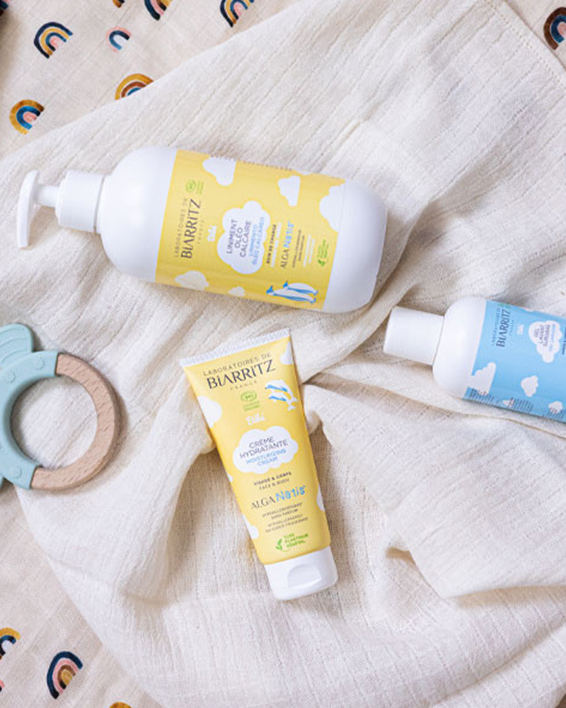 A base di Alga-Paisium, un estratto esclusivo che lenisce e aiuta a prevenire le irritazioni della pelle fragile dei neonati.