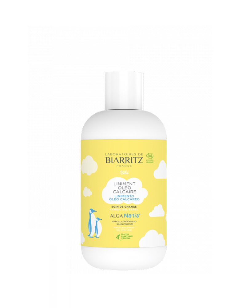Durante il cambio del pannolino, il Linimento Oleo-Calcareo Delicato deterge la pelle del bebé nutrendola e creando una pellicola protettiva che aiuta ad isolarla dalle irritazioni esterne (urina, feci e sfregamento del pannolino). Questa pellicola protettiva, combinata con l’estratto Alga-Paisium aiuta a prevenire l’arrossamento della zona dei glutei del bebé. Il pH alcalino del linimento neutralizza l’acidità dell’urina e aiuta a ristabilire il pH più adatto e simile a quello della pelle.