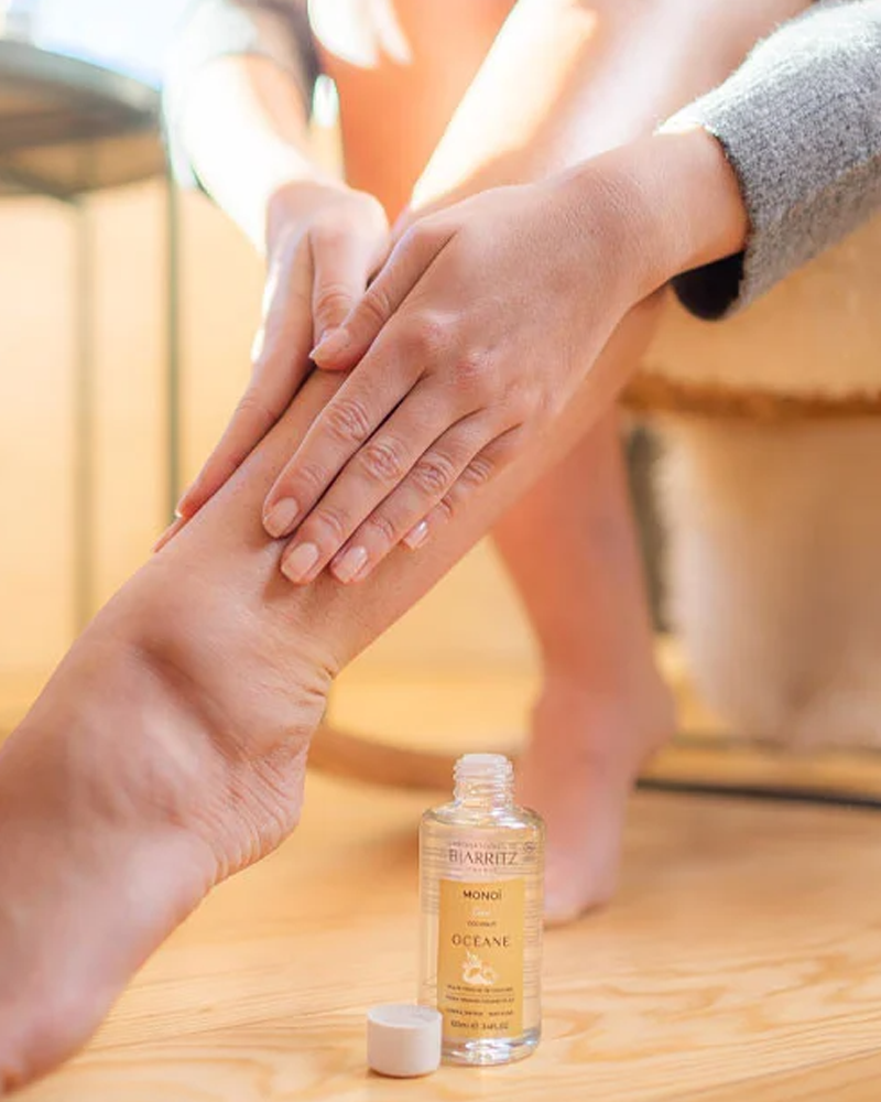 Applicare con un delicato massaggio sulla pelle come rituale quotidiano dopo la doccia o dopo una giornata di sole. L'Olio di Monoï penetra velocemente sia in caso di pelle umida che asciutta. Può essere anche utilizzato sui capelli come maschera o sulle punte secche.
