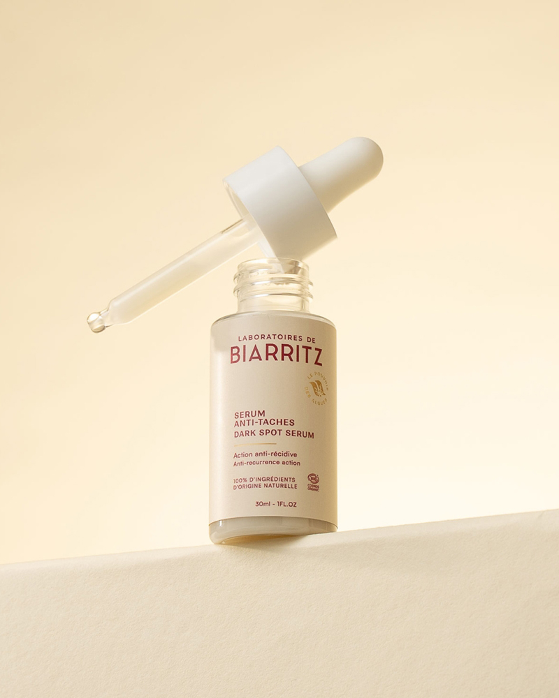 Siero correttore anti-macchie certificato bio, formulato con un trio esclusivo di alghe e vitamina C. Uniforma, illumina e previene la ricomparsa delle discromie cutanee, anche sulle pelli sensibili.