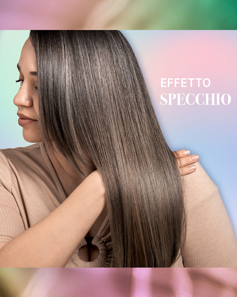 Scopri il segreto di una luminosità straordinaria a effetto specchio! Chioma estremamente brillante e morbida.