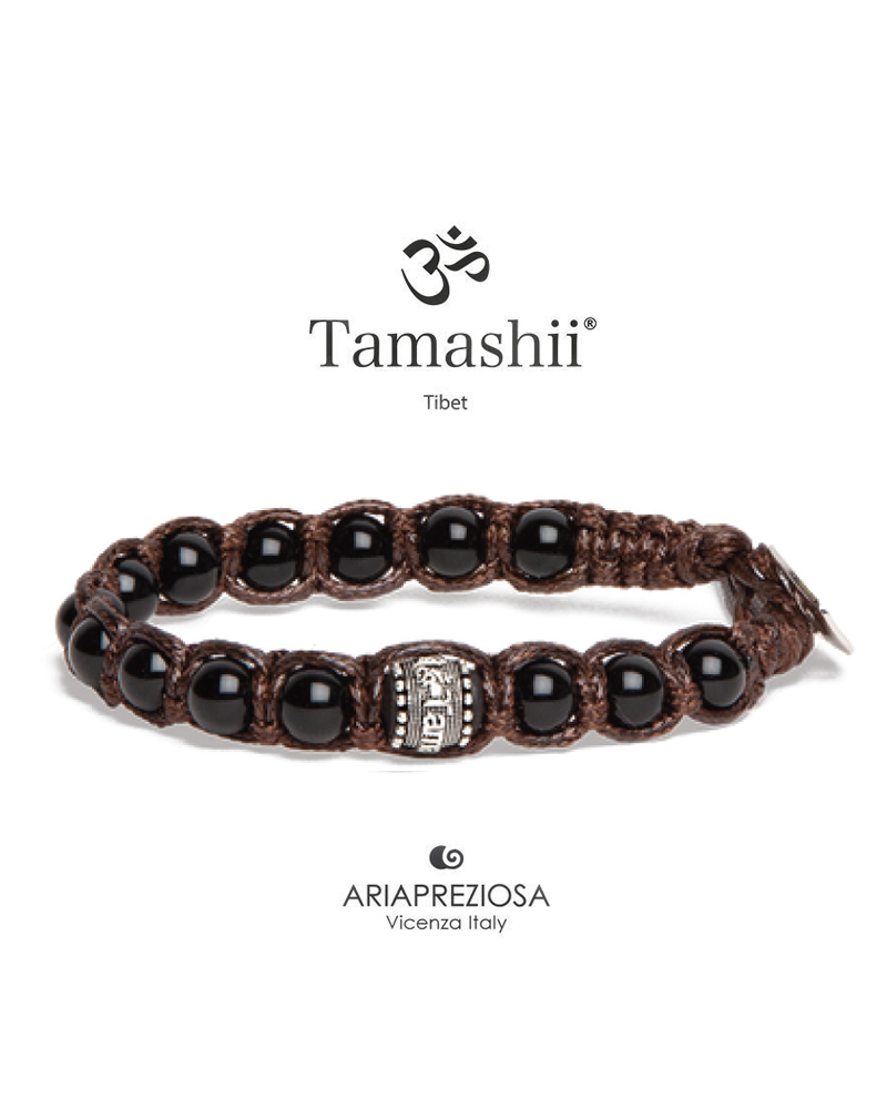 Il braccialetto Tamashii® Onice 6 mm rafforza coraggio e autoconsapevolezza, trasformando energie negative in compassione. Con Ruota della Preghiera in Argento 925.