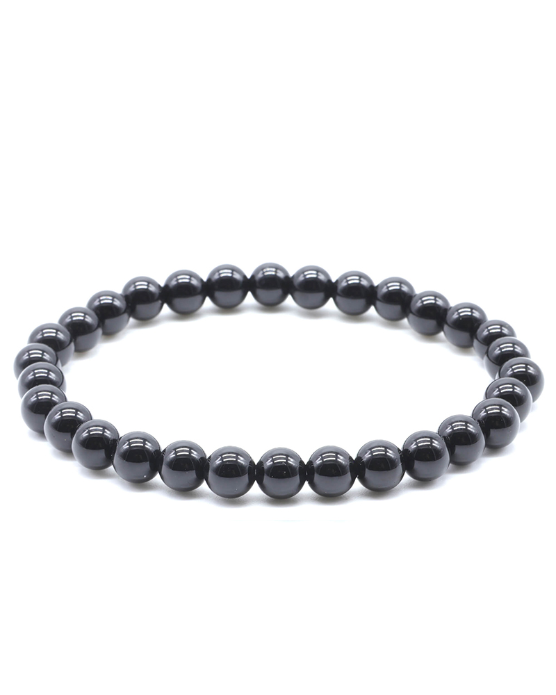 Bracciale in Onice Nera naturale (perle da 6 mm), montato su elastico resistente. Pietra di protezione, centratura e forza interiore, ideale per ritrovare equilibrio e sicurezza.